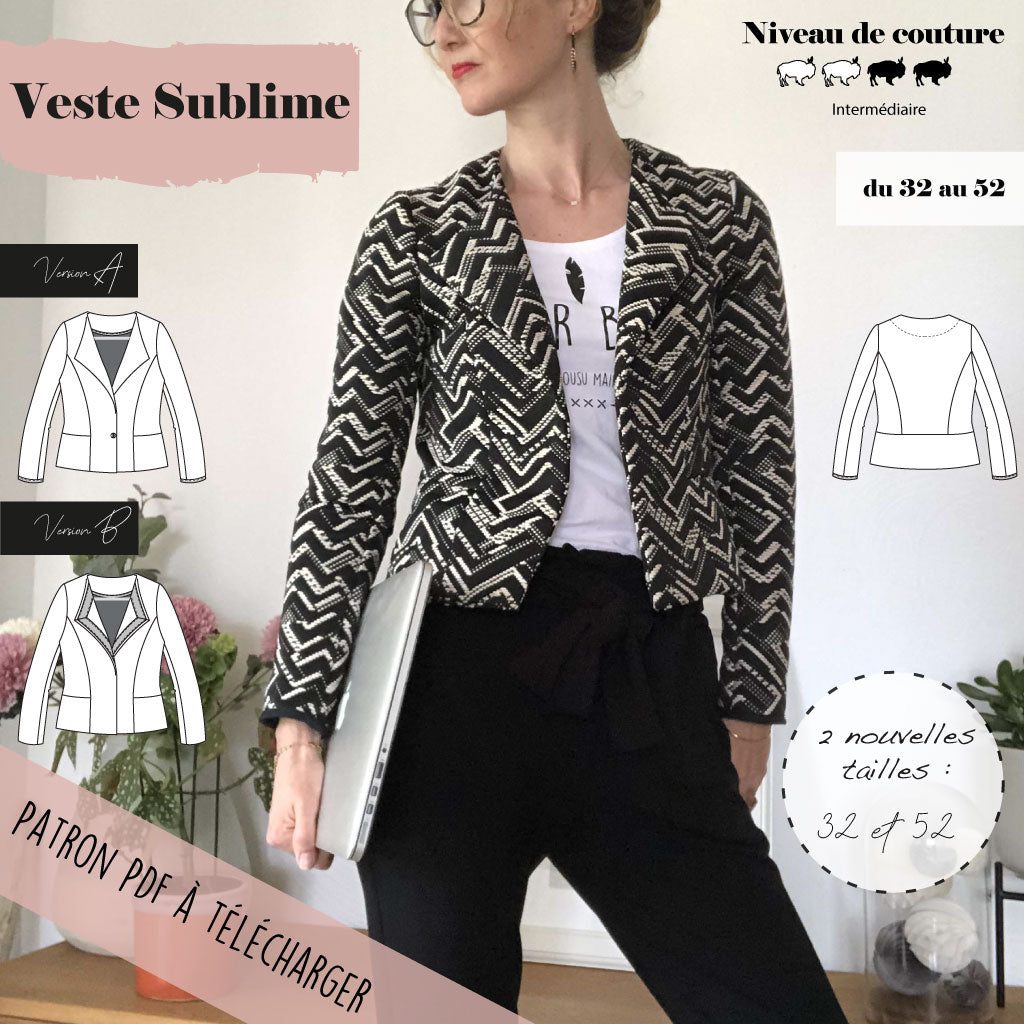 Sublime est notre première veste blazer femme à porter sur un jean+t-shirt ou une robe, vous pouvez la décliner dans le tissu que vous souhaitez : jacquard, velours, sergé, jean, molleton et lui donner un style habillé ou casual, c’est vous la styliste !