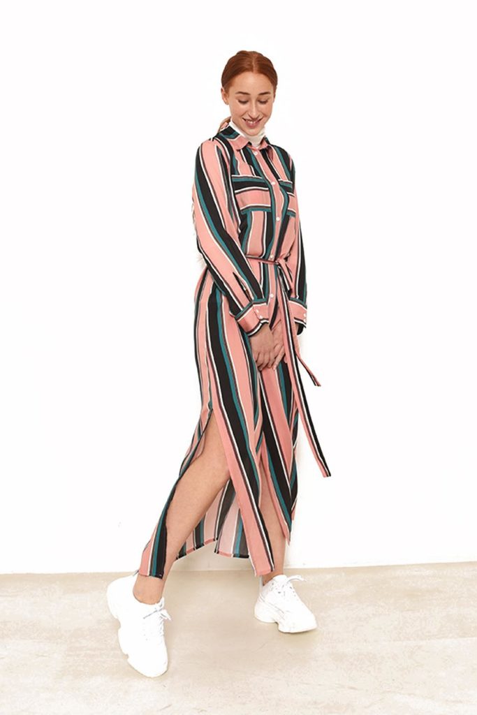 Des rayures et une robe chemise ample, au niveau des chevilles, c’est la combinaison gagnante pour le printemps. Les fentes sur les côtés de la robe Susan créent un joli effet aéré, une ceinture accentue la taille. Cette robe maxi est un vêtement élégant qui peut être porté avec un imprimé pour égayer votre look quotidien.