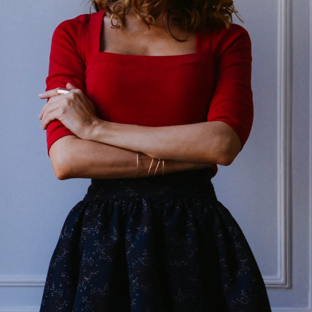 Le modèle signature de la boutique. Un top à l’incroyable décolleté carré qui flattera toutes les morphologies. Développé en collaboration avec une modéliste lingerie, il a été pensé pour pouvoir bouger, se pencher sans bailler lors de vos mouvements. 4 manches au choix et un bonus débardeur inclus pour vous suivre toute l’année. À réaliser avec une simple machine à coudre. Ce modèle doit être cousu dans une maille avec 50% de taux d’élasticité minimum.