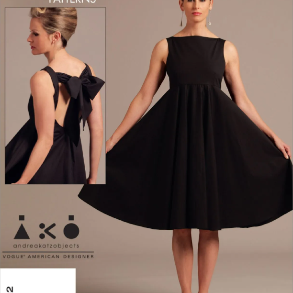 La robe en dessous du milieu du genou a un corsage ajusté, doublé et sans manches avec des extrémités nouées dans le dos pour maintenir le corsage en place, une jupe évasée, une taille surélevée et une fermeture éclair dans le dos.