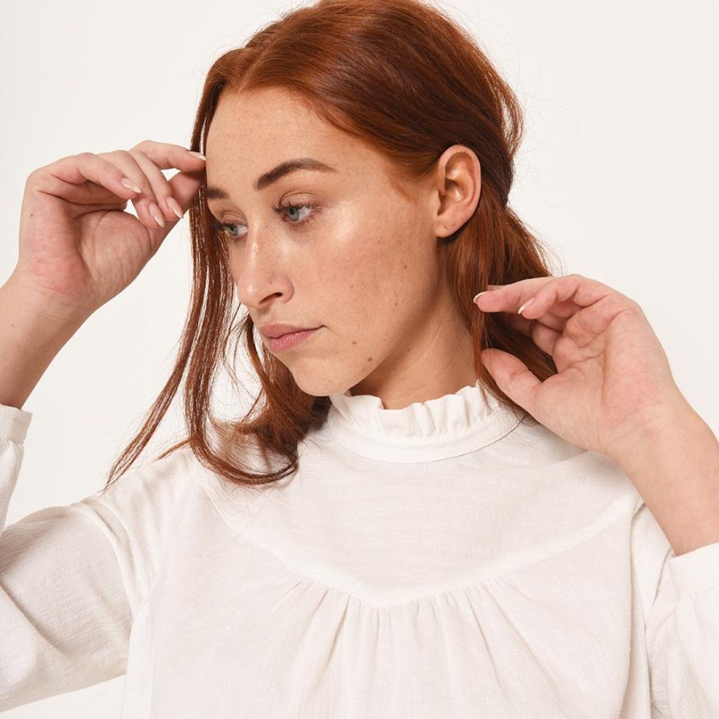 Le tissu idéal pour la blouse Victoria est un tissu en broderie anglaise (= un tissu ajouré brodé en coton ou un mélange de coton et de polyester). L’aspect doux, aérien, naturel du tissu rejoint parfaitement le style romantique du top. Vous pouvez également utiliser un coton léger ou une viscose dans une couleur claire et fraîche ou associer ce tissu avec de la dentelle.