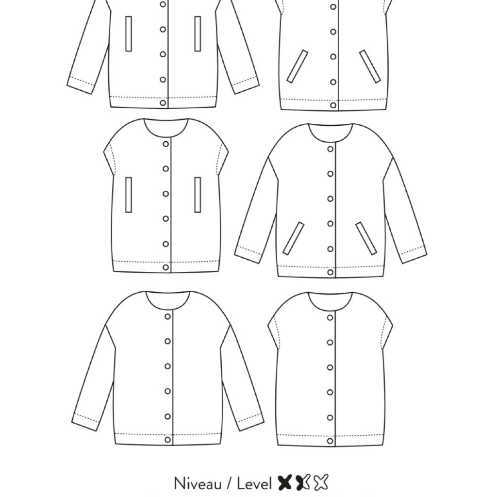 Veste over-size avec ou sans manches, à la fois confortable et charismatique. Sa forme boule vous donnera irrésistiblement envie de vous y lover ! Modèle non doublé, simplement fini par des parementures et des enformes gansés, permettant l’usage de tissus aussi beaux dedans que dehors. Epaule basse et encolure ras-du-cou. Option poche paysanne, haute ou basse